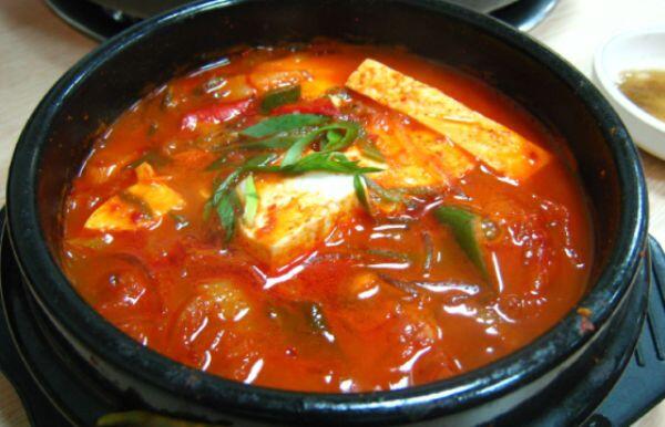 La Kimchi Jjigae è una zuppa i cui ingredienti sono Kimchi, cipolla, tofu e carne di manzo o maiale. È un piatto molto saporito e piccante che viene sempre accompagnato da una ciotola di riso, molto utile per smorzarne la piccantezza. Da mangiare assolutamente se si vuole provare un sapore coreano DOC.