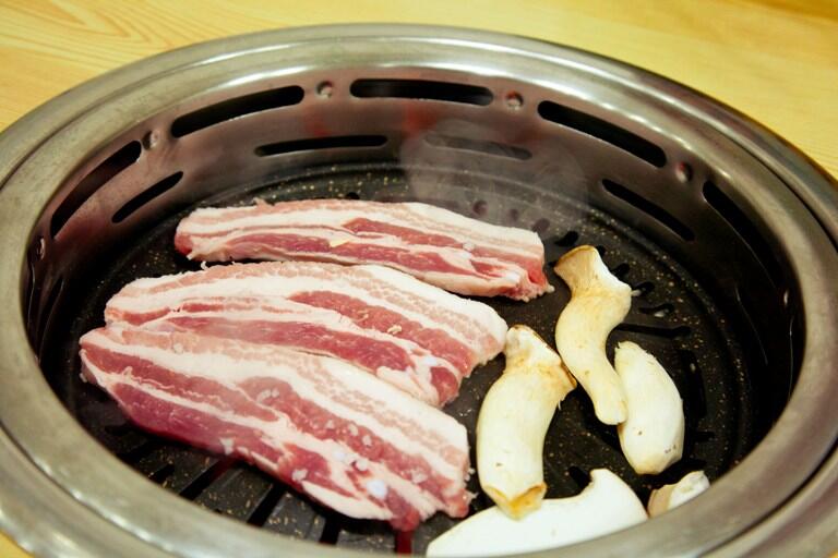 Il samgyeopsal non è altro che pancetta tagliata a fettine più o meno sottili. La grande particolarità di questo piatto è che generalmente viene cotto direttamente dal cliente su una griglia posta al centro del tavolo, quindi si ha la possibilità non solo di vedere se la carne è fresca o meno, ma anche di sceglierne il livello di cottura. È praticamente come fare un barbeque… ma al ristorante!
