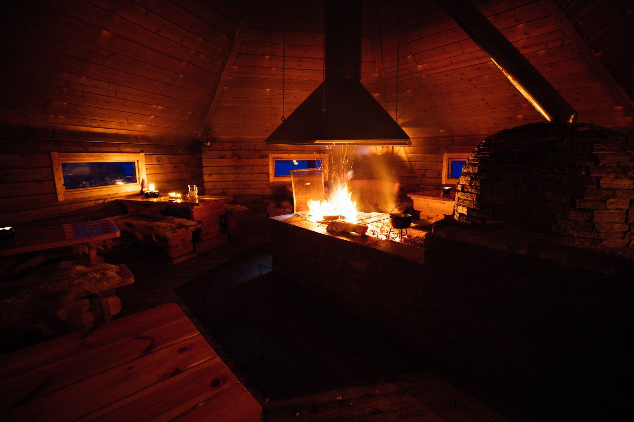Trasferimento dall'albergo per raggiungere il camp allestito in una zona adatta per osservare l'aurora boreale, sorseggiando una bevanda calda intorno al fuoco.