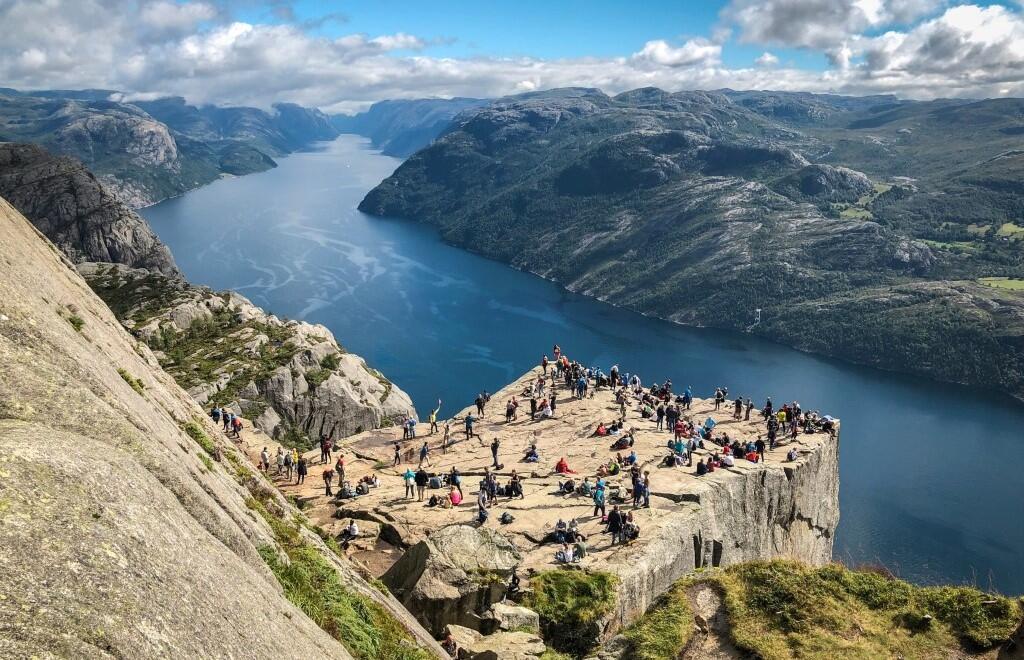 Il Pulpito (Preikestolen in norvegese) è una delle escursioni più famose di tutta la Norvegia, e oggi capirai perché. Arrivato sulla cima, dominerai infatti il Lysefjord da un’altezza di oltre 600 metri. Questo hiking è di difficoltà media. Il percorso tra andata e ritorno è di circa 8 km e l’ascesa di quasi 500 metri. È una passeggiata adatta a chiunque sia un buon camminatore, non c’è bisogno di particolare esperienza. Se tuttavia non te la senti, potrai sempre decidere di visitare Stavanger o di fare una bella crociera sul Lysefjord e ammirare il Pulpito dall’acqua, sarà comunque un’esperienza indimenticabile!