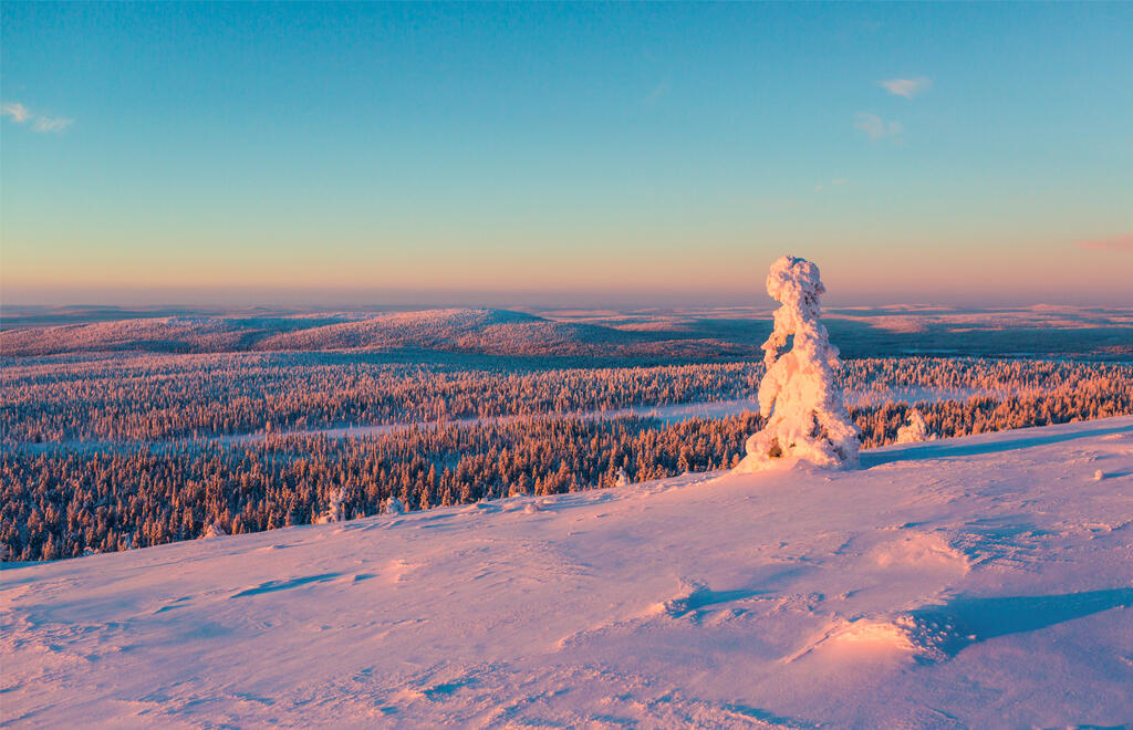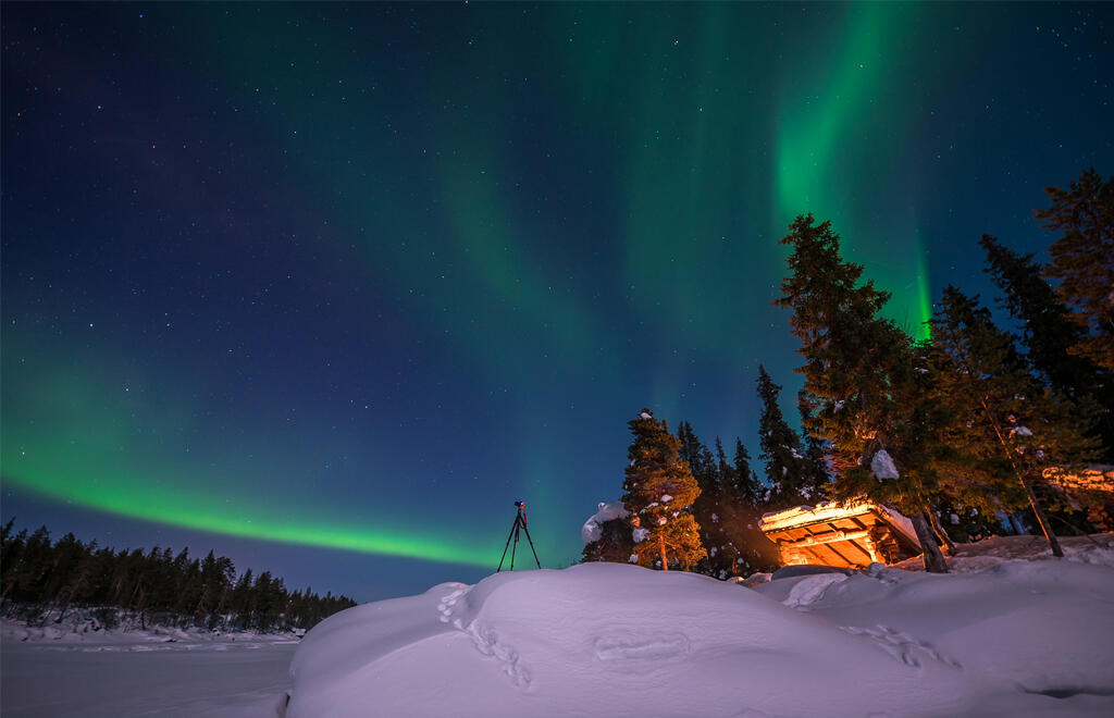 Partenza dall'Italia per Ivalo con voli di linea Finnair via Helsinki. Arrivo in Lapponia e trasferimento privato al villaggio di Inari. Sistemazione al Wilderness Hotel Juutua. Dopo la cena, consegna dell'abbigliamento termico che rimane a disposizione durante il soggiorno in Lapponia. Pernottamento.